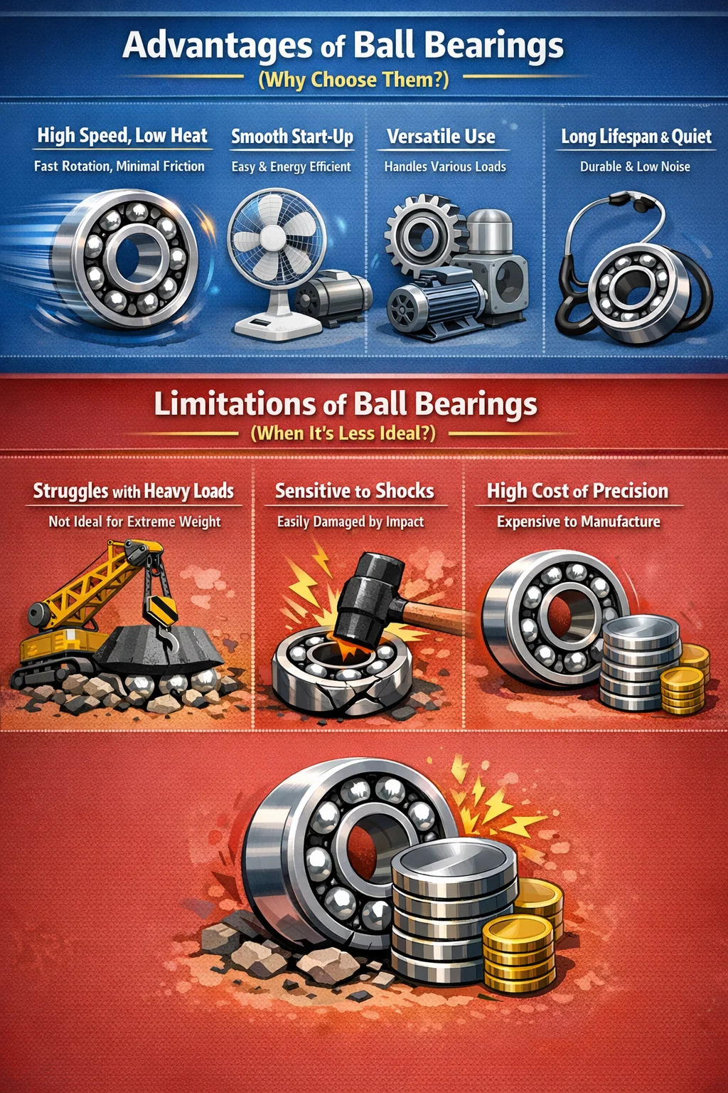 There's no absolute "good" or "bad" in ball bearings; it all depends on their application. While they excel in many lightweight, high-speed applications, they also have limitations when handling extremely heavy workloads.